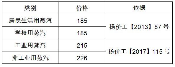 揚州市區(qū)蒸汽價格表