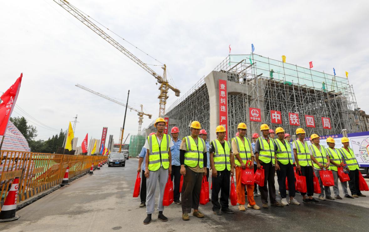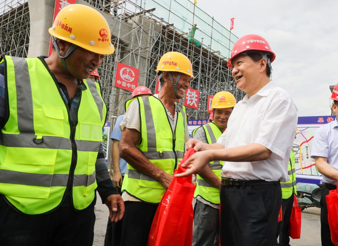 在慰問(wèn)現(xiàn)場(chǎng),楊正福與施工人員親切交談,送上慰問(wèn)品,了解他們來(lái)自哪里,生活如何。叮囑他們,在做好工程施工、確保工程質(zhì)量?jī)?yōu)良的同時(shí),也要注意身體,避開(kāi)高溫作業(yè),做好高溫下的各項(xiàng)防護(hù)工作,安全生產(chǎn)。