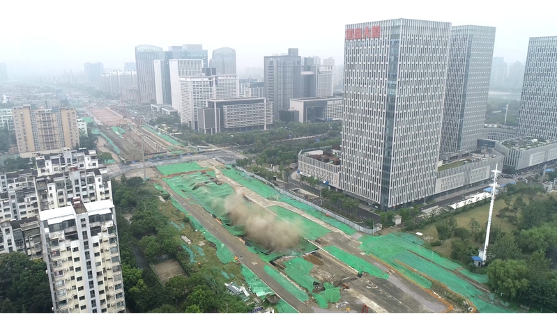 潤(rùn)揚(yáng)路下穿文昌西路隧道長(zhǎng)418米,是揚(yáng)州市區(qū)首條機(jī)動(dòng)車下穿通道。因原隧道不能滿足潤(rùn)揚(yáng)快速路道路通行要求,根據(jù)潤(rùn)揚(yáng)路快速化改造工程施工方案及進(jìn)度安排,需對(duì)原文昌西路隧道進(jìn)行拆除擴(kuò)建。此次爆破拆除的隧道底板厚約1.2米,機(jī)械拆除大約需要40天,且噪音持續(xù)時(shí)間長(zhǎng),通過(guò)爆破方式拆除隧道,可以節(jié)約近一半的時(shí)間。本次爆破為下一步機(jī)械拆除創(chuàng)造了良好的破碎條件。城控集團(tuán)董事長(zhǎng)葉善祥、總經(jīng)理夏正東參與現(xiàn)場(chǎng)指揮。