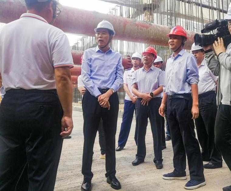 在運河南北路快速化改造施工現(xiàn)場,何金發(fā)檢查了工程建設情況,聽取了工程進展匯報及下步工作計劃,詳細了解了工程建設中存在的實際困難,并就施工過程中的安全、進度、質(zhì)量等方面工作提出具體要求。