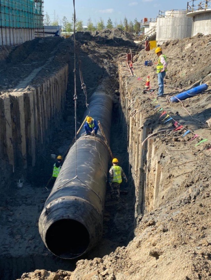 為保證施工順利進行,施工過程中采用了多點井點降水,保證施工作業(yè)面無水狀態(tài)。在確保進度和工期的同時,潔源公司項目部狠抓質(zhì)量控制、安全管理,對關(guān)鍵部位、關(guān)鍵工序的施工過程中全程監(jiān)管,嚴格把關(guān),在管道鋪設(shè)過程中,做到分層夯實,對回填土嚴格要求,保證了回填質(zhì)量。雖然二沉池進水工藝管道施工,存在施工作業(yè)面小、對縫難度大、過程控制要求高等難點,但潔源公司項目部克服困難,抓好現(xiàn)場質(zhì)量檢查,對管道焊縫進行無損探傷檢測,對回填土進行環(huán)刀見證取樣,保證了施工質(zhì)量,最終在10月12日完成了該段管道鋪設(shè)任務(wù),為湯汪污水處理廠三期工程擴建項目早日通水打通了主動脈。