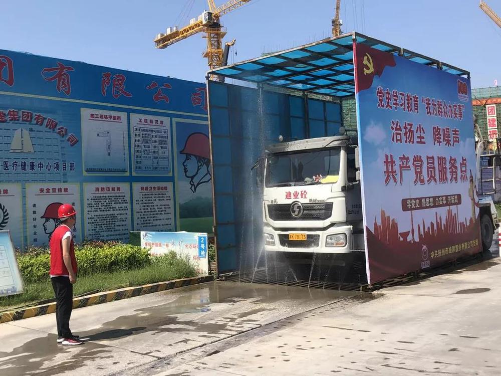 活動(dòng)中,黨員志愿者兵分兩路出發(fā),一處向周邊群眾和施工作業(yè)人員分發(fā)宣傳我公司為保護(hù)城市生態(tài)環(huán)境底色開展的一系列揚(yáng)塵降噪舉措;另一處志愿者在項(xiàng)目出入口處指揮檢查進(jìn)出車輛沖洗情況,嚴(yán)禁拖泥帶污車輛駛出場(chǎng)外,影響周邊環(huán)境衛(wèi)生,造成城市道路污染。目前我公司在建項(xiàng)目所有建筑工地均增添灑水降塵設(shè)施,工地實(shí)施6個(gè)100%治理標(biāo)準(zhǔn),即:施工現(xiàn)場(chǎng)圍擋率、工地物料堆放覆蓋率、路面硬化率、車輛沖洗率、濕法作業(yè)率、運(yùn)土車輛密閉率均達(dá)到100%。隨后,黨員志愿者們?cè)陧?xiàng)目負(fù)責(zé)人的帶領(lǐng)下見證了“智慧工地”系統(tǒng)和BIM-VR安全教育系統(tǒng)在實(shí)際工作中的應(yīng)用,“智慧工地”的運(yùn)用實(shí)現(xiàn)了隨時(shí)隨地可對(duì)項(xiàng)目安全、質(zhì)量、揚(yáng)塵防控及進(jìn)度等各方面的全覆蓋無死角管理。大家在感慨國(guó)家科技水平日新月異進(jìn)步的同時(shí)也增強(qiáng)了學(xué)好本領(lǐng)多為群眾辦實(shí)事的思想自覺和行動(dòng)自覺。