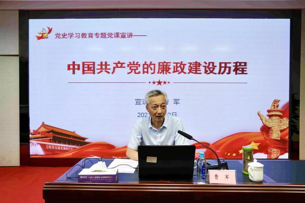 曹軍以《中國共產(chǎn)黨的廉政建設(shè)歷程》為題,從新民主主義革命時(shí)期的廉政建設(shè)、社會(huì)主義革命和建設(shè)時(shí)期的廉政建設(shè)、改革開放和社會(huì)主義現(xiàn)代化建設(shè)新時(shí)期的廉政建設(shè)、中國特色社會(huì)主義新時(shí)代的廉政要求四個(gè)階段,學(xué)習(xí)回顧了中國共產(chǎn)黨廉政建設(shè)的歷史經(jīng)驗(yàn),結(jié)合當(dāng)前反腐倡廉形勢(shì)分析了問題,對(duì)下一步反腐敗工作提出了要求。