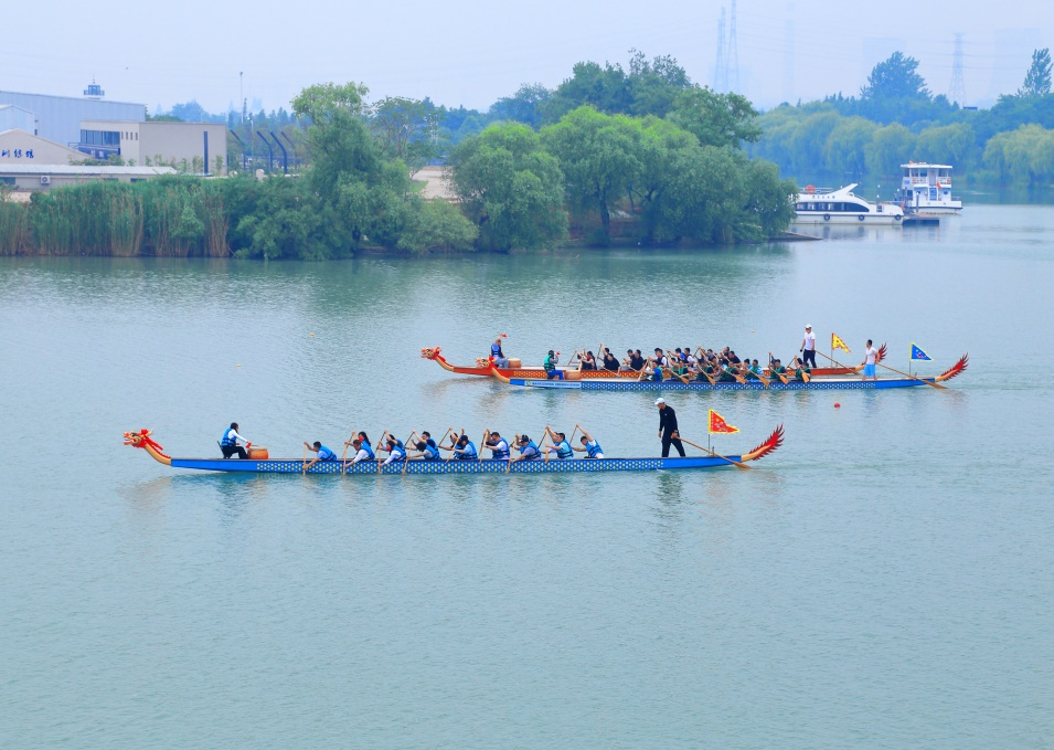 龍舟賽活動(dòng)現(xiàn)場(chǎng),葉善祥為每艘賽船龍頭進(jìn)行了點(diǎn)睛后,宣布龍舟賽正式開(kāi)賽。哨聲響、鼓點(diǎn)起,3支龍舟隊(duì)在水面同時(shí)競(jìng)發(fā),選手們各司其職,精神抖擻,整齊劃一的揮動(dòng)手中的船槳破浪前行。親友團(tuán)在岸邊搖旗吶喊、歡呼鼓掌,湖面浪花飛濺,十分壯觀。經(jīng)過(guò)訓(xùn)練賽、250米競(jìng)速賽,最終三只龍舟都齊心協(xié)力抵達(dá)終點(diǎn),角逐出了一二三名,集團(tuán)領(lǐng)導(dǎo)為獲獎(jiǎng)的各支隊(duì)伍頒獎(jiǎng)。