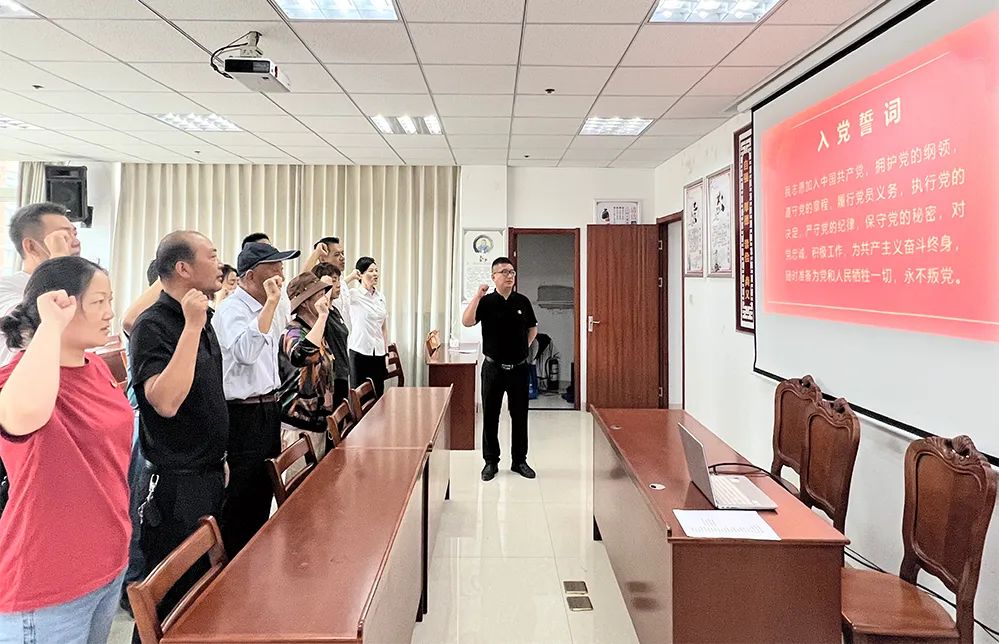 “我志愿加入中國(guó)共產(chǎn)黨,擁護(hù)黨的綱領(lǐng),遵守黨的章程,履行黨員義務(wù)......”在社區(qū)黨支部書(shū)記的帶領(lǐng)下,參加活動(dòng)的黨員面對(duì)黨旗,莊重地舉起右手,重溫了入黨誓詞,再一次作出了莊嚴(yán)的承諾。一句句鏗鏘有力的誓言,深情表達(dá)著為共產(chǎn)主義事業(yè)奮斗終身的堅(jiān)定信仰。值得一提的是,社區(qū)邀請(qǐng)了兩名50多年黨齡的老黨員參加了此次活動(dòng),使在場(chǎng)年輕黨員備受鼓舞。