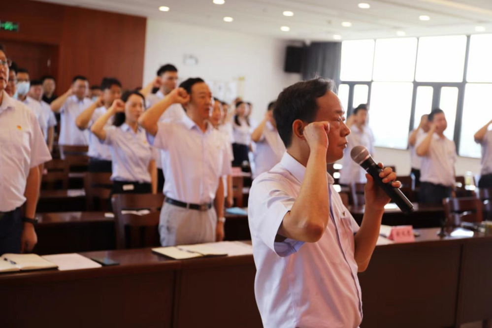 錚錚誓言,拳拳初心。在公用控股黨委副書記帶領(lǐng)下,全體黨員高舉右拳,莊嚴宣誓。鏗鏘有力的宣誓,表達了大家對黨的無限忠誠、熱愛和聽黨話、跟黨走的堅定決心。宣誓結(jié)束后,參會黨員代表結(jié)合崗位特點、工作職責,圍繞“入黨為什么、成長靠什么、為黨干什么”等方面,回顧了入黨經(jīng)歷,講述了入黨故事,分享了成長歷程。