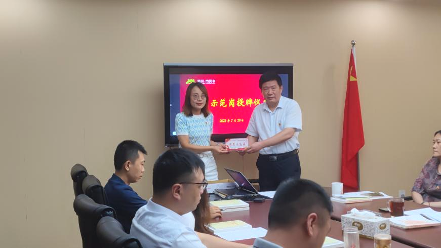 會(huì)上,黨支部舉行了黨員示范崗授牌儀式,公司黨支部書記為黨員示范崗授牌,號(hào)召黨員學(xué)習(xí)他們不怕吃苦、甘于奉獻(xiàn)、攻堅(jiān)克難、勇于擔(dān)當(dāng)?shù)木瘢纬蓪W(xué)習(xí)先進(jìn)、爭(zhēng)當(dāng)先進(jìn)的良好氛圍。