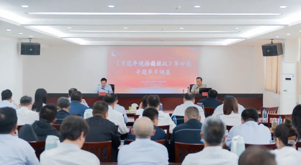為深入學習貫徹習近平新時代中國特色社會主義思想,9月28日下午,長江水務(wù)公司舉辦《習近平談治國理政》第四卷專題學習講座,邀請揚州市委黨校丁健處長講課,公司黨委班子成員、各支部書記、各部門主要負責人、黨員代表聆聽講課。城控集團黨委委員、長江水務(wù)公司董事長張正斌主持活動。