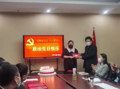 活動中,黨員代表回顧了自己的入黨經(jīng)歷,分享了自己的心路歷程,并表示在今后的工作和生活中,將銘記黨員身份,牢記入黨誓詞,不忘初心,永葆本色,做一名合格黨員。支部書記代表市民卡黨支部為8名10歲以上黨齡的黨員送上“生日”祝福,頒發(fā)生日賀卡,并送上“生日”蛋糕。希望每名黨員都要以過政治生日為契機,給自己加油、充電,補精神之“鈣”,堅定理想信念,增強政治定力,做一名在工作和學習中充分發(fā)揮先鋒模范作用的合格共產(chǎn)黨員。