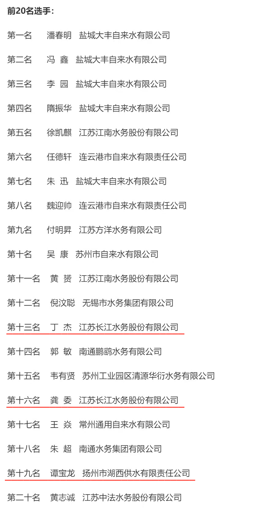 功夫不負(fù)有心人,他們?cè)谫悎?chǎng)上充分發(fā)揚(yáng)奮勇爭(zhēng)先、團(tuán)結(jié)奮斗的精神風(fēng)貌,賽出了水平、賽出了狀態(tài),展現(xiàn)了長(zhǎng)江水務(wù)一線職工良好的專業(yè)素養(yǎng)和過(guò)硬的技術(shù)技能水平,為長(zhǎng)江水務(wù)公司和揚(yáng)州代表隊(duì)贏得了榮譽(yù)。