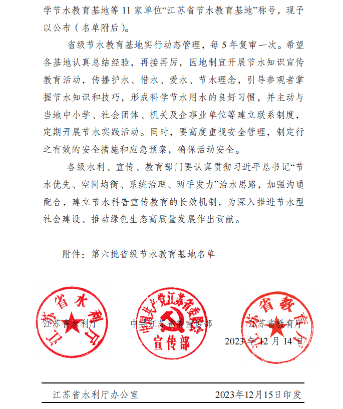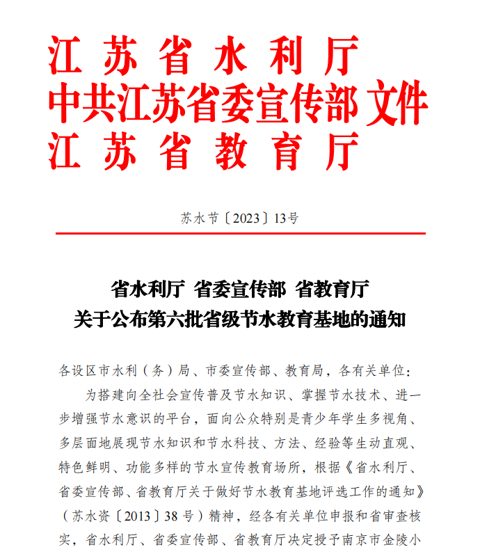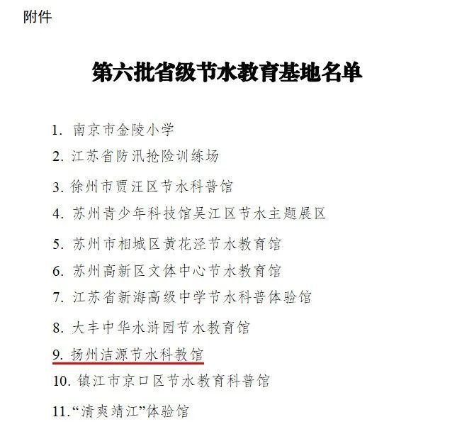近日,由省水利廳、省委宣傳部和省教育廳聯(lián)合發(fā)文,揚(yáng)州潔源節(jié)水科教館順利通過(guò)評(píng)選驗(yàn)收,成功入選第六批省級(jí)節(jié)水教育基地。
