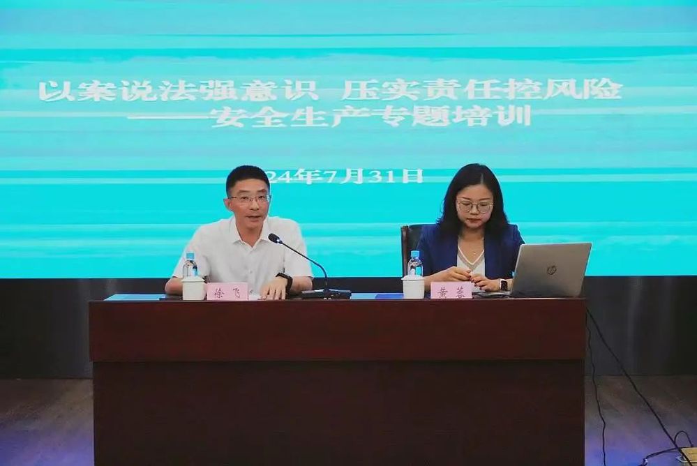 為進(jìn)一步管控風(fēng)險(xiǎn),壓實(shí)安全責(zé)任,筑牢安全防線。7月31日下午,城控集團(tuán)組織開展安全生產(chǎn)培訓(xùn),宣貫《江蘇省生產(chǎn)經(jīng)營(yíng)單位安全風(fēng)險(xiǎn)管理?xiàng)l例》,講授安全生產(chǎn)知識(shí)。集團(tuán)黨委副書記徐飛主持活動(dòng)并講話,集團(tuán)企管部相關(guān)人員,各單位主要負(fù)責(zé)人、安全生產(chǎn)分管負(fù)責(zé)人和安全生產(chǎn)職能部門負(fù)責(zé)人共60余人參加活動(dòng)。