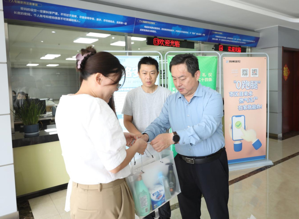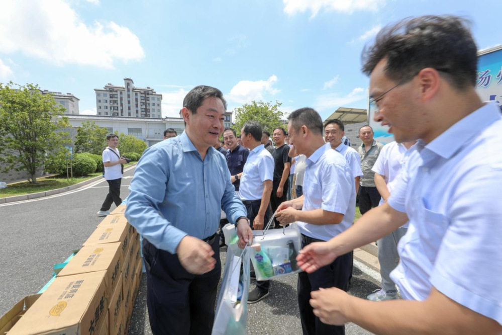 “高溫天氣,工作辛苦,大家要好好照顧自己,做好個人防護(hù)。” 炎炎夏日送清涼,滴滴關(guān)愛暖人心。每到一處,城控集團(tuán)董事長張思忠都詳細(xì)詢問職工們高溫天氣下的工作和生活狀況,叮囑大家,勞逸結(jié)合,做好防護(hù),確保安全生產(chǎn)和身體健康。