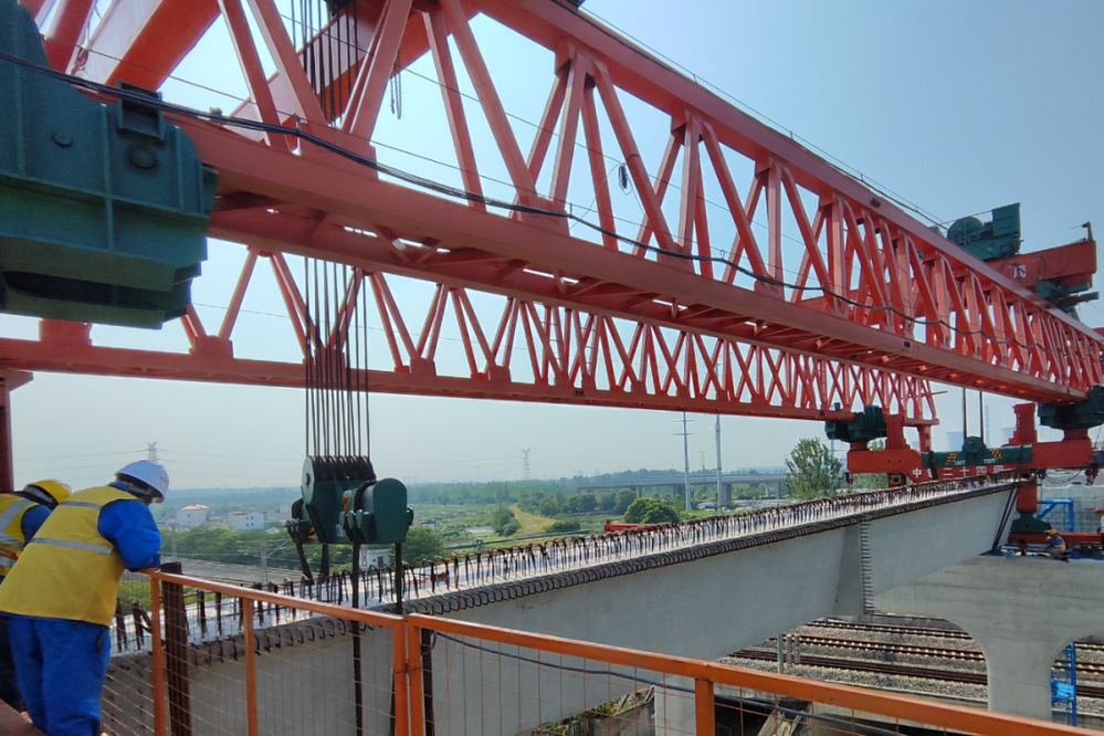 8月10日上午,運(yùn)河路北延鐵路鄰跨順利完成架橋機(jī)過(guò)軌、首片箱梁架設(shè)施工任務(wù),打響了跨鐵路箱梁架設(shè)施工第一槍。