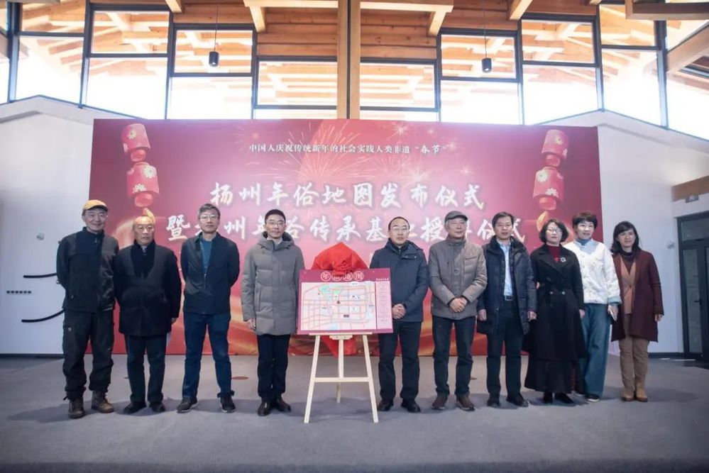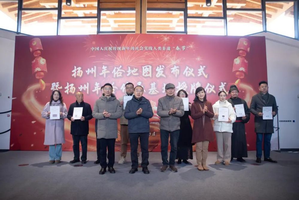 2025年1月10日上午,由揚(yáng)州年俗保護(hù)單位揚(yáng)州文藝家志愿者協(xié)會(huì)精心策劃的揚(yáng)州年俗地圖發(fā)布儀式暨揚(yáng)州年俗傳承基地授牌活動(dòng)在小秦淮劇場(chǎng)熱烈開啟,為即將到來(lái)的新春佳節(jié)奏響了激昂序曲,也為揚(yáng)州非物質(zhì)文化遺產(chǎn)傳承與發(fā)展注入了新的活力。揚(yáng)州市文聯(lián)黨組書記、文聯(lián)主席黃振宇、揚(yáng)州城控集團(tuán)黨委副書記徐飛、揚(yáng)州市委宣傳部原常務(wù)副部長(zhǎng)李廣春、著名文化學(xué)者顧風(fēng)等嘉賓出席并授牌。