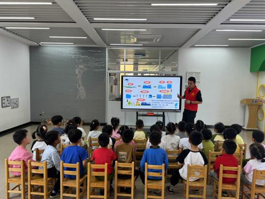 活動現(xiàn)場,揚州中法環(huán)境工作人員化身為“節(jié)水小老師”,用生動有趣的語言和形象的動畫視頻,為孩子們講解一滴水從水源地到水龍頭的奇妙旅程,讓孩子們直觀地了解到水資源的來之不易。