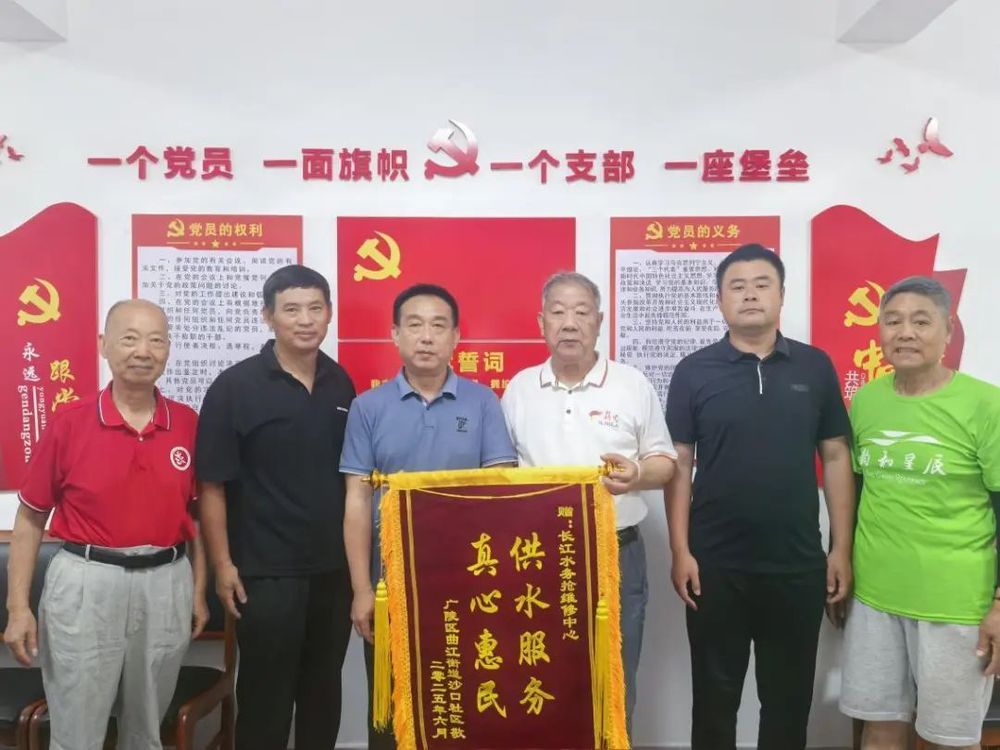 6月17日上午,沙口社區(qū)老年活動室負責(zé)人來到長江水務(wù)搶維修中心辦公樓,將寫有供水服務(wù),真心惠民的錦旗贈予搶維修中心,并表示此行重點是表達對長江水務(wù)“管子鉗突擊隊”解決老年活動室用水困難的感謝。