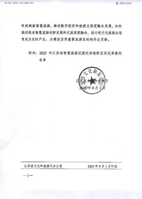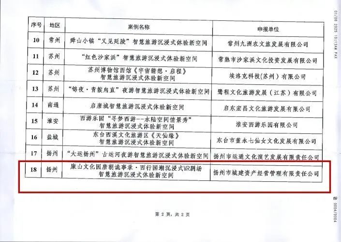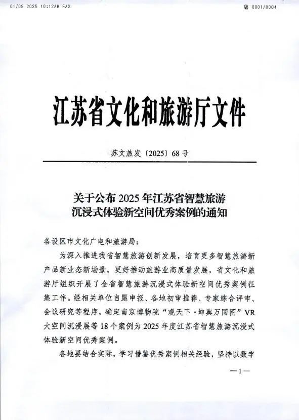 在近日江蘇省文化和旅游廳公布的《2025年江蘇省智慧旅游沉浸式體驗新空間優(yōu)秀案例名單》中,揚州《唐朝詭事錄·西行》國潮沉浸劇場與南京博物院“觀天下·坤輿萬國圖”VR大空間沉浸展等18個案例共同被評選為2025年江蘇省智慧旅游沉浸式體驗新空間優(yōu)秀案例。