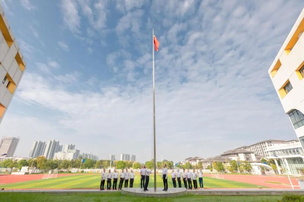上午8時整,儀式正式開始。三名護旗手邁著鏗鏘有力、整齊劃一的步伐,護衛(wèi)著鮮艷的五星紅旗走向升旗臺。“向國旗——敬禮!”的口令響起,伴隨著雄壯激昂的《義勇軍進行曲》,五星紅旗迎風展開,在全場人員深情的注目禮中冉冉升起,直至頂端迎風飄揚。這一刻,莊嚴而神圣,濃濃的愛國情懷和自豪感在每個人心中油然而生。