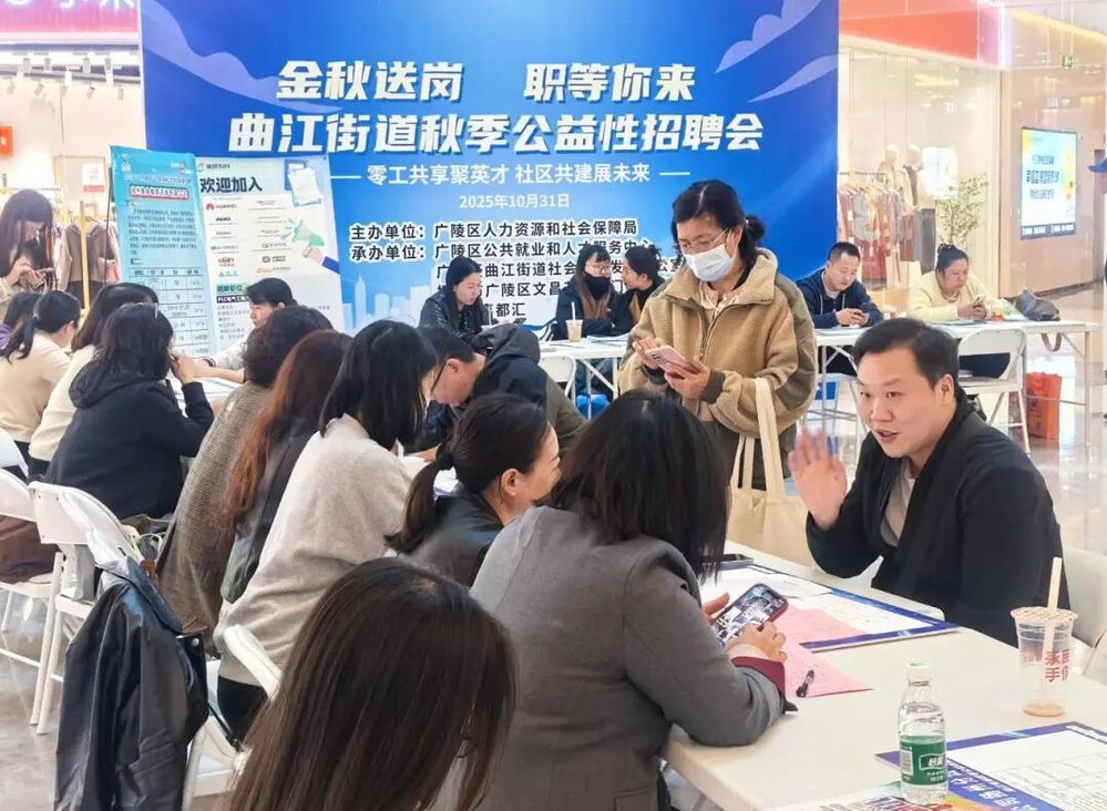 10月31日下午,嘉都匯商業(yè)鄰里中心聯(lián)合廣陵區(qū)人社局等部門共同支持的“金秋送崗 職等你來——零工共享聚英才 社區(qū)共建展未來”秋季公益性招聘會,在一樓中庭圓滿落幕。